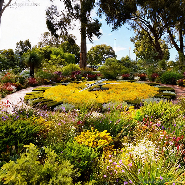 A floral clock performs best when planting design is aligned with climate realities, irrigation strategy, and staffing. The surrounding landscape in this case emphasizes water-wise, regionally appropriate planting, a procurement-friendly direction because it reduces risk from heat, wind, and water constraints while supporting education and biodiversity messaging. Seasonal bedding inside the dial is treated as a controlled display zone, allowing color themes to be planned around festivals and peak visitation months.
