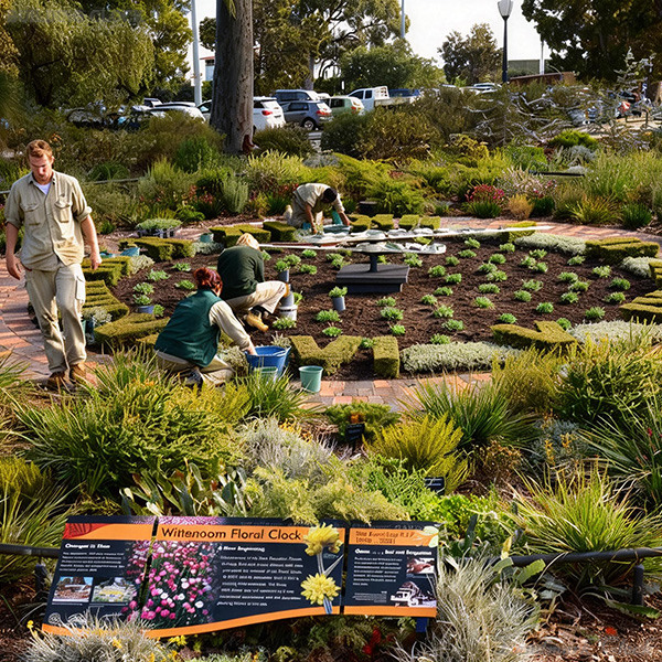 A floral clock performs best when planting design is aligned with climate realities, irrigation strategy, and staffing. The surrounding landscape in this case emphasizes water-wise, regionally appropriate planting, a procurement-friendly direction because it reduces risk from heat, wind, and water constraints while supporting education and biodiversity messaging. Seasonal bedding inside the dial is treated as a controlled display zone, allowing color themes to be planned around festivals and peak visitation months.